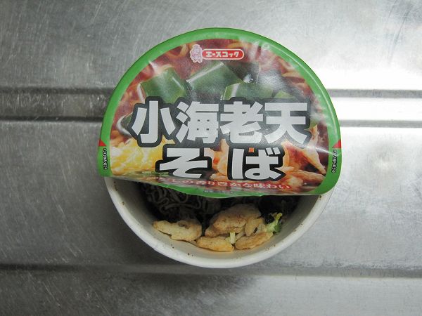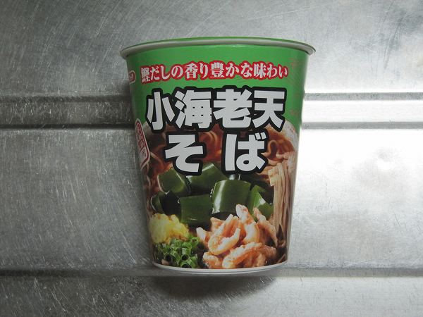 必要以上の飾ったデザインが全く無い、まさにシンプルイズベストというかリーズナブル感満載の縦型カップの登場。その名も小海老天そばです。
