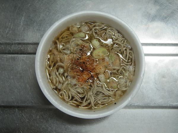 麺はスナック麺タイプの蕎麦麺となっており、このタイプとしてはしっかりとしたコシの強さがあり蕎麦の風味もきちんと伝わってくるだけでなくおつゆもよく絡みます。