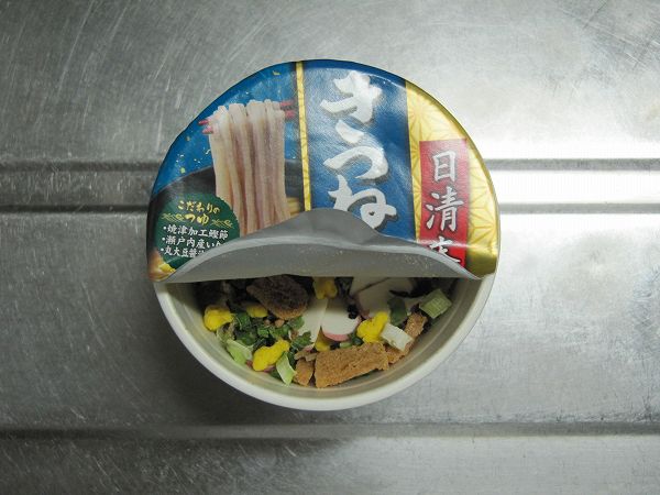 日清庵シリーズということですが今回はきつねそばです。焼津加工鰹節、瀬戸内産いりこ、そして丸大豆醤油100%が入っているこだわりのつゆが旨さの決め手です。