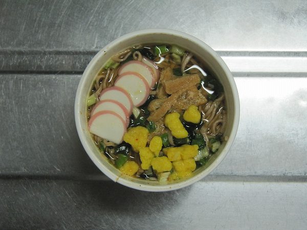 麺はスナック麺タイプの蕎麦麺となっており、このタイプの麺としてはしっかりとした食感があり、蕎麦らしい風味も感じることができるとともにボリュームもあります。