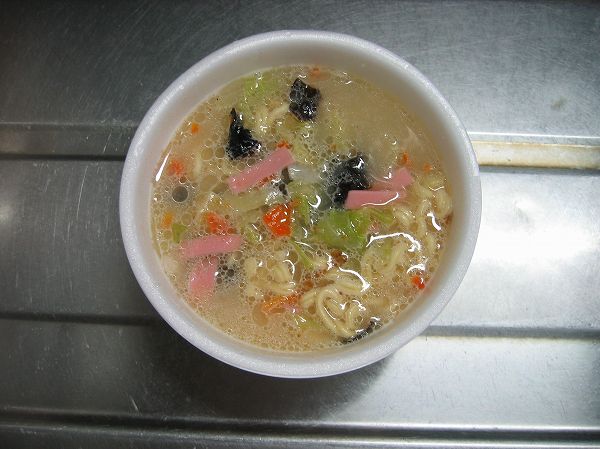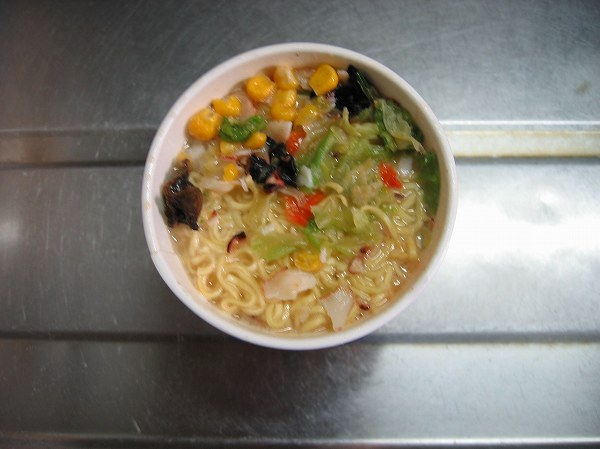 長崎が抜けたちゃんぽんははたしてどのような味なのか。期待と不安が入り交じった状態でお湯を入れて5分待ちました。