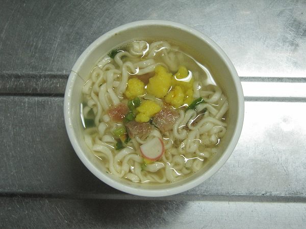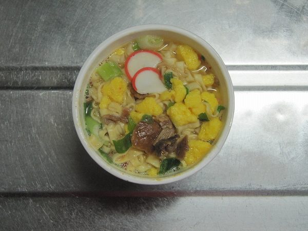 かつおと豚骨を合わせたコクと香りのスープといったことが蓋に書いてありました。沖縄そば特有のスープの香りを心ゆくまで堪能できそうな予感がします。