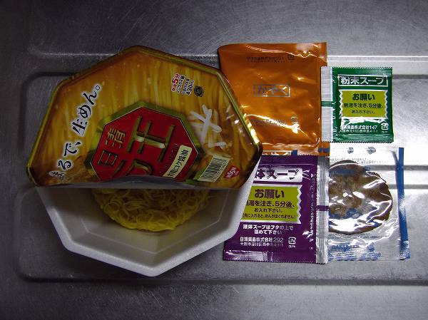麺はお馴染みの氷結乾燥ノンフライ麺となっており、滑らかな舌触りと外側が柔らかめで芯がしっかりとしているのがよく解り、スープの味わいが染みている感じです。
