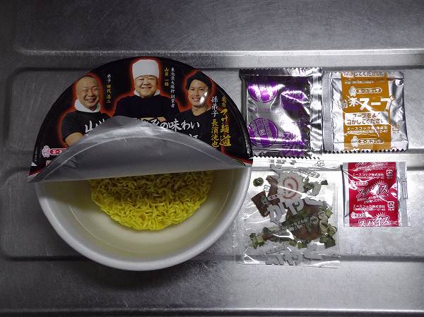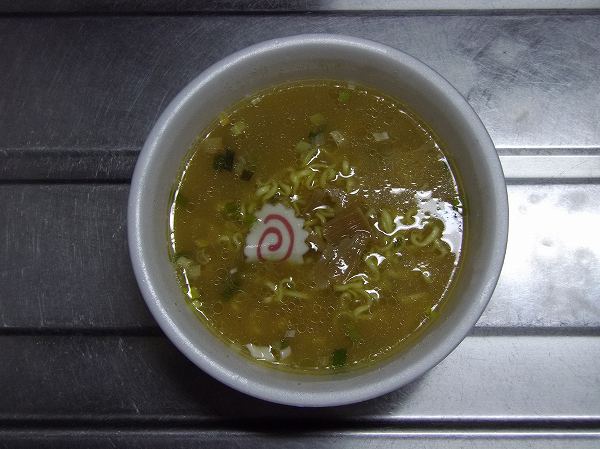 お湯を入れて4分、蓋を開けて特製スープを入れてよくかき混ぜれば完成。煮干しの風味の良さと一緒にラードの香りもしてくるので普通の醤油と違う雰囲気があります。