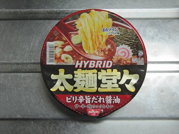 ○ 「HYBRID 太麺堂々 ピリ辛旨だれ醤油」(日清)