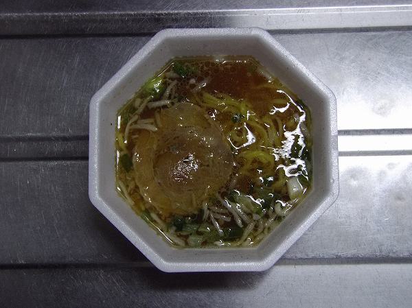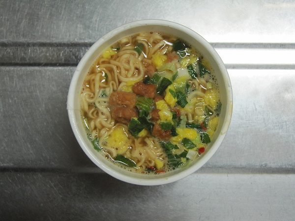 お湯を入れて3分、蓋を開けて液体スープを入れてよくかき混ぜてから最後に調味油を入れて軽くかき混ぜれば完成。鼻を近づけるとラードのとても良い香りがしました。