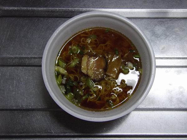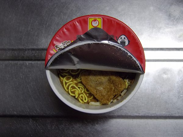 お湯を入れて3分、蓋を開けてよくかき混ぜれば完成。鼻を近づければ解るくらいのチキンと醤油が合わさった香りが漂ってくるような感じで、普通に美味しそうです。