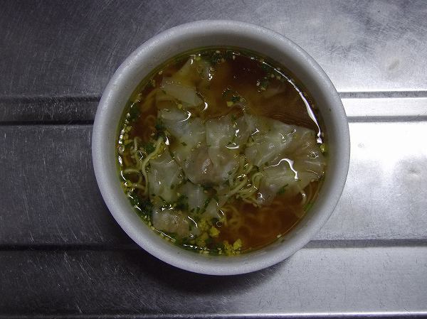 具はワンタン、タマゴ、ゴマ、長ネギの4種類となっており、ワンタンはツルツルとした舌触りでネーミング通りに肉の旨みが染みている餡がビッチリ詰まっています。