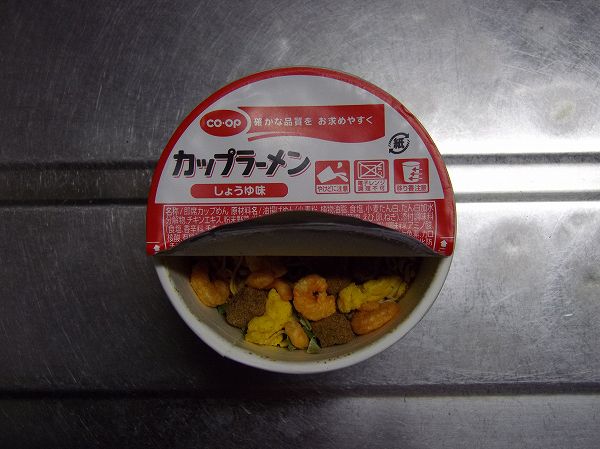 ○ 「カップラーメン しょうゆ味 えび入り」(コープ)