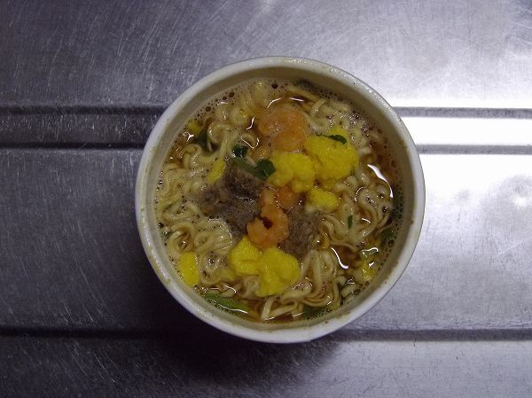 今回はしょうゆ味ということで前作と何が変わったのとかいいますと、具材に新たにエビが加わりました。エビがあるのと無いのでは味も雰囲気もまったく違いますね。