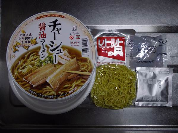 お湯を入れて4分、蓋を開けて特製スープを入れてよくかき混ぜてから、レトルト具材を入れたら完成。ラードと魚介が一緒になったとても良い香りが漂ってきました。
