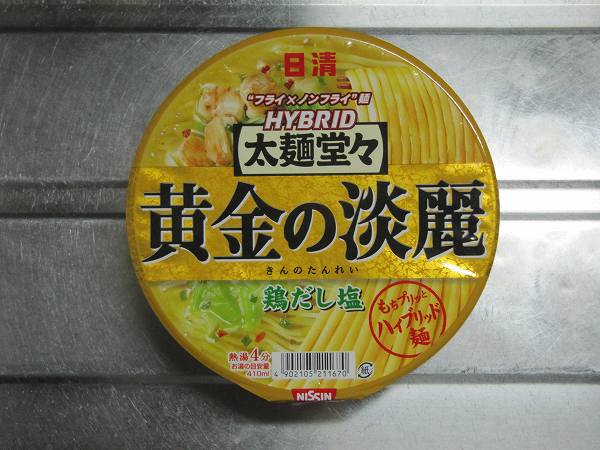 ○ 「HYBRID 太麺堂々 黄金の淡麗 鶏だし塩」(日清)