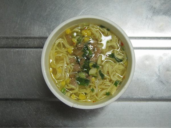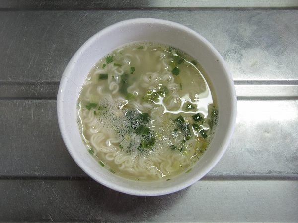 お湯を入れて4分、蓋を開けてよくかき混ぜれば完成。鶏や豚だけでなく様々なエキスが加わっているというのが解るくらいの良い香りがしてきて食欲をそそられます。