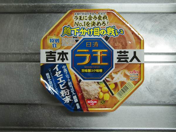 完成度の高いカップ麺としてお馴染みのラ王と、よしもと「あなたの街に”住みます”プロジェクト」のコラボ企画として登場したイセエビ粉末旨味豚コク味噌です。