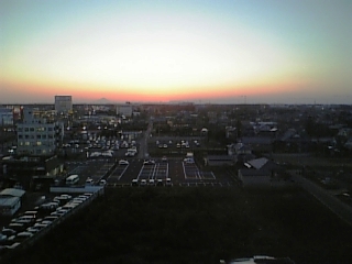 社団法人○○法人会という組織がそれぞれの町にあります。その中に青年部、というものがあって、僕は日立地区の会長をしています。「県内各地区の会長さんで作る会」があって、つくばに行きました。つくばに集まって、今年度の行事についての会議と、新年会をしました。その会の創立20周年とかで「親睦ソフトボール大会」を企画していました。秋にはその企画が出されていたのに、僕は失念していたらしい……で、すっかり忘れていて、その日に日立地区の工業部会の見学旅行を組んでしまいましたからさぁ大変。旅行の幹事役なのに、ソフトボール大会の運営側で、なおかつ日立地区の親分。無理です。 旅行は九州地方ですもん。で、日本各地に強いパイプを持つ後輩に旅行幹事を代行してもらえるよう折衝。なんとか、どちらも遂行できる可能性が出てきました。最近、何でもかんでもよく忘れてしまいますの。若年性アルツハイマー?? (若年は余計?)約束の内容ではなく、約束をしたことさえ忘れていたら申し訳ないですよね。もし、もし、もしや、、、僕と約束をしていて、反故にされた経験のある人がいたら申告してください。申告されても、謝ることしかできませんが(^^;つくばに宿泊して、夕日が落ちるところを見ました。遠く富士山がとんがって見えました。 (地平線 やや左側の灰色の△)