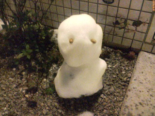 その翌深夜帰宅すると雪だるまがお出迎え。