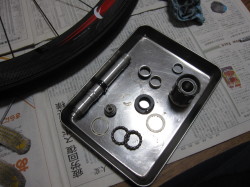コルナゴについているシートポストは、SP-6400は、かなり重い。実測286g。特にエアロタイプは重いみたいです。シートポストやサドルは、重心より遠くにある部品で軽量化を体感しやすいパーツで、軽いものに換えたくなりました。最近の黒いシートポストは気に入らず、またクロモリフレームにカーボン製シートポストは使えません。軽量でアルミ製の美しいシートポスト、シマノの傑作SP-7410(絶版)を手に入れることしました。ちょっと傷がありましたが、ヤフオクで定価の半値ほどで手に入れることができました。SP-7410はちょっと長めのために、フレームに入っていかないので、カットしました。元の長さで193g。カット後177gに・・・。カーボンポストもびっくりの重量。軽量の秘密は、SP-6400に比べると超薄い断面。また、ボルトは中空だったりして徹底的な軽量化を施しています。仕上げもきれいで満足です。クロモリフレームにあっていると思います。ちょっと軽量化しすぎたモデルなのか、やぐらががたつく個体もあるようです。気をつけて扱わないといけませんね。シマノには、この傑作品を復刻してくれることをお願いしたいです。