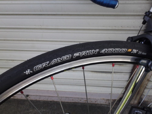 早速、朝走ってきましたよ。GP4000Sは、乗り心地が悪いという評判でしたが、まったく気になりませんでしたよ。手組みホイール(32H)+R-airに組み込んだからかもしれませんが・・・。下りでリアがロックすることもなく、グリップも十分にあります。まだ表面が一皮むけていないので、本当の性能はまだわかりません。感じた特徴は、直進での安定感です。また、バイクを倒したときのグリップや挙動の急な変化もなく、クセの少ないいいタイヤです。今まで使ってきたミシュランPRO4やハッチンソンフュージョン2などと似た感じで、タイヤ構造全体でグリップするタイプ(ビットリアなど)ではなくタイヤのトレッド部分でグリップするタイプだと思います。結論、最近思うのは、ある程度金額がするフラッグシップクラスのタイヤはハズレは無いのではないかと思います。耐久性があるというので今後が楽しみです。Continental(コンチネンタル) グランプリ4000Sカテゴリ:パナレーサー|自転車チューブ|ロード|クロスバイク|||パナレーサー 『TW720-F-RA』TW720-F-RA R-AIR 700x18-23C 仏式 32mm