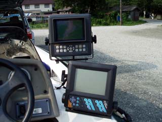 6月にいつもお世話になっているワークスハセガワさんにお願いしてGPSプロッターを取り寄せ&取り付けをお願いしました。今回取り付けたのは写真後方の葵ソニックのSPC-750のGPSプロッターのみの6型カラー液晶モデルです。何故今頃インプレしたのかというと、6月に取り付けてから南湖で2回、その後野尻湖遠征が続き、湖北に行ってから2回しか使ってないからです。たいがいバスフィッシングですとGPSと魚探が両方ついたものを付ける方が多いですが、僕の場合バスボートと言うこともあり、GPSプロッターを別につけるスペースがあったのと、今付いているHONDEX HE-5600(写真前方)がとても性能がいいのでこれをあえて外さず使用したいのと、GPSプロッターだけだとかなり安いからです。今回は取り付け工賃込みで11万くらいでした。後はローランスやイーグルの海外製のものを使う選択肢もありましたが、こちらは日本地図の問題や取説の問題もありまして国産の葵ソニックに決めました。ただ並行輸入できる人や英語ができる人でしたら、海外製の性能もかなりいいし安いですし、画面の輝度も高いので日中でも見やすいです。葵ソニックの今年モデルでしたら新しいシステムの人工衛星WAASにも対応しているので将来的にも使い続けるにはもってこいって感じです。実際使った印象は結構衛星を捕捉して精度もなかなか高かったです。ただ湖北の一部ではボートが陸に付いているところもありましたが・・・。登録したポイントには一発で入れるし結構便利です。日本一広さを誇るの琵琶湖では視界が霞んで岸が全く見えなくなることがあります。そんなときでも目的地に向けて迷子になることなく迎える安心感もありますね。画面はこんな感じです。7/23の航跡が残っていますが、湖北から長浜経由で彦根に行って、激荒れの中湖北に戻ったことがわかります。写真が小さいのでわかりにくいですがちょっと太い紺色の線が航跡です。GPSで速度も計測でき、誤差も時速3キロ程度らしく、自分のボートのMAXスピードを測りましたが、87Km/h出ていました。17ft6.5inのボートで115馬力のエンジンなので、このクラスでは結構速いかも知れません。欠点は国産モデルでホンデックスや葵ソニックに共通するのがカラー液晶だと、日中では見えにくいので遮光フードが必要になることです。フードさえあればコクピットで見る分には何も問題ありません。フロントでやや上に向けている場合はフードがあっても見づらいかも知れません。輝度の高さではイーグル、ローランスが良いですね。まだまだ機能もあまり把握できていませんが、ぼちぼち色々試してみようと思ってます。