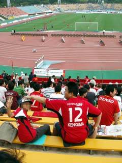 7/24のジュビロ戦に会社の同僚とジュニアの3人で瑞穂に出動しました。グランパス君は相変わらずサポーターの人気者です。日曜日と言うことと、暑さも少し落ち着いていたこの日、結構サポーターも沢山入って試合前からボルテージ上がっています。試合の方は流石上位に強いグランパス!!守備がしっかりしていてフィニッシュまでいかせなかったです。フィニッシュまで行っても我らが守護神楢崎が仁王立ちで安心して見てられました。見に来ていたジーコには正ゴールキーパーとしてのアピールは十分できましたね~。藤田も大分フィットしていて良いパス連発していました。藤田のサポーターソングはかつての原竜太の替え歌です。相互リンクさせていただいている*ichigo*さん一押しの竜太君ですが、完全移籍してしまって残念!!山形で頑張ってちょ~~~話は脱線しましたが、今日のMVPは直志です。シャドーストライカーとしては日本随一ですね。今回の試合でジーコにアピールできたのではないでしょうか???秋田は古賀を代表に送り込むと行っていましたが、僕は直志にも近いうちに日の丸背負って欲しいです。というわけで中断前に今シーズン生観戦で初勝利は嬉しかったです。まだまだ混沌としているJリーグ。上位に食い込むチャンスは残っているので是非良い準備をして欲しいですね~。今回は大声で歌いすぎて喉痛いっす。でも心地よい喉の痛みであることは言うまでもありません。また勝ち試合みたいですね~。