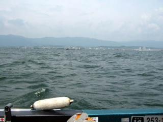 天気 晴れ時々曇り風 ベタ~南東~ベタ表水温 26~27℃前後釣行時間 6:00~17:00釣果 口の小さいバス多数、巨ギル大多数GW以来のファイブオーシャンからの出動です。朝から視界が悪くポイントに向かうのが困難ですが、6月に付けたGPSプロッターが大活躍で一直線に行きたいところに行けます。がしかし湖北方面のロックエリアやマンメイドストラクチャーではノーバイト。夏に良い島に向かいますと巨ギルヒット。そんなわけで湖東方面に向かいます。鳥人間コンテスト真っ盛りです。しかしまだ朝なので飛んでません。湖東のマンメイドやウイード、ブレイクは釣れても30クラスまで。湖東の島に向かいます。ここはいつも湖流がガンガンなのですが、ほとんど流れていません。ここでも前回の日記で書いた自己記録のマグナムサイズギルをキャッチしてしまう始末(泣)ここで横断し、湖西に入ります。ここでネバサマにも顔を出されているマツナガさんと遭遇。単発ですが良いサイズをキャッチされているそう。このまま北上し、めぼしいポイントをプロットしながら釣りしますが、全くノー感じのまま終了となりました。今回は全く湖流が無く、通常水通しの良いポイントでもギルまみれになってしまいました。次回は湖北、湖東を中心に今回見れなかったポイントをチェックしてみようと思っています。