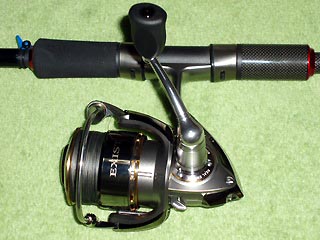 遂にやってしまいました~!!今日会社帰りにルアーショップおおのさんに寄って買ってしまいました~!!ダイワ イグジスト2506です!!ヤフオクでイグニス2506C2個売って資金捻出しました。実はこのままヤフオクで購入しようかと思いましたが、何度入札しても高値更新されてしまうし、入札するたびにおおのさんのオジサンの顔が浮かぶ(笑)(こいつは真っ先にリアクションバイトするだろうと踏まれ、発表後すぐカタログを渡されました(笑))まさしくオジサンの呪いか!!(爆)全く落札することは出来ず、今日このいきさつをおおのさんで話してみんなで大爆笑!!非常に軽い、巻き心地は良いし、ソルトでも使える。軽さはイグニスを凌駕しているし、巻き心地はセルテートと同等。今の僕の考えている物にぴったりです。今現在僕の用途や考えだと、リールの場合はロッドの重量に合わせたリールの選択と淡水専用でなく、ソルトでも使えて、バスにもイカにもシーバスにも使える事がキーになります。重量のあるロッドやヘビーな釣りではセルテートが活躍してくれそうです。またイグジストはセルテートとスプールも同じ物が使えるので、替えスプールを持っていれば用途の幅も広がるのではないかと思います。箱は段ボールになったけど、リールケースがまた高級!!リールケースは使わない僕にとってはこれを付けなくていいからもっと安くして!!とメーカーに言いたいです。後気に入らないのはキリキリうるさいドラグの音!!こんなもの買ってしまったらまたあの方にブルジョアとか言われそう(笑)今度の土曜ボートエギングでデビューする予定です。