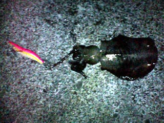 今日から仕事で沼津に来ています。当然いい漁場でありますので、仕事が終わってから釣りです(笑)まず今日はエギングです。春頃の日記にも書いていた、千本浜でサーフエギングにチャレンジ!しかし波が高いのと潮が速すぎであっという間にエギが流されてきます。1ozのジグも流されてしまいます。玉砂利で波がスゴイ音です。潮もガンガン満ちてきて及び腰になってしまい、あっけなく退散。完璧にナ・メ・テ・マ・シ・タ結局伊豆半島のつけ根の漁港に移動します。ここも潮が結構動いてますが、風も吹いてます(泣)しかし我慢の釣りで何とかハンバーグサイズですが、アオリーQ3号でアオリー君をキャッチ~!サイズの割には良く引きました。短時間でしたが、シチュエーションも良く結構楽しめました。明日はカンツリナイターかな?