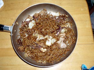 本日の昼食は焼きそばだったんですが、釣ってきたアオリイカのゲソを入れました。これがまた激うま!!ゲソ自体もアオリと言うことだけあって柔らかく美味しいんですが、そのダシ(?)が焼きそば全体に染み渡って凄くいい風味になります。マイカ等の他のイカではこの風味は出ないです。ただやはり豚肉を入れないと淡泊になりますので、イカと豚肉は一緒に入れることをオススメします。やっぱり名古屋のコーミソースがベストマッチ!!後、お好み焼きに入れるのもオススメですね。刺身やイカソーメンも美味しいですが、この手の食べ方も楽しめますね!!