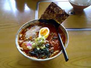 今日は出張最終日でした。朝仕事先に向かう途中にこの方達と遭遇しました(笑)道路で3,4匹戯れていましたが、車が近づくと山にお帰りになられました。仕事も午前中には終わり、平家の里へ向かいました。今日のメニューはこちらです。名前は忘れましたが、豪華な醤油ラーメンです。海苔、コーン、チャーシュー、半熟卵等々ふんだんに入れてあります。今日は辛いのは止めておきました。腹の調子は良くて、むしろ便秘気味(笑)ですが、他にも美味しそうなラーメンに興味を引かれたわけです。それと今日他のお客さんで最強の火消しラーメン「署長」にチャレンジされている方がいました。値段は2000円弱ですが、辛さは最強(僕の食べた部長は遠く及ばず)、麺は2倍で、10分で完食した人はタダになるという代物です。しかし流石にクリアーした人は2人だけだそうです。しかもラーメンどんぶりでなく、デカイ壺に入っています(汗)今回の方も時間内には食べられなくて残念!!しかし涼しい顔をして完食されていました。ちょいと僕には真似できませんが、また次回来た時にはもう1ランク辛い火消しラーメンをクリアーしようと思っています。