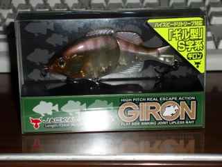 今度の土曜にいよいよ琵琶湖バス釣り三昧が始まります。火曜にルアーショップおおのさんで先日のお礼と不足してる消耗品の補充をしたのですが、昨日タックル整理をしている時に今度の土曜に引き倒そうと思っていた大きめのチャートのスピナベが僕のラインナップに存在しないことが発覚!!今日会社帰りに近所の釣り具屋でゲットしに行きました。がしかし僕が欲しかったBカスタムやクリスタルSが見あたりません。そこで目に付いたのがこいつ!!ジャッカルのギロンです!!S字系みたいで、ハイスピードリトリーブもイケるそうです。ちょうど今の時期にデカバスのエサになりそうなサイズなので方針変更でこいつを引くことにしました。後はヘビキャロ、テキサス、ダイビングミノー、ヘコヘコ、ダウンショットの6タックルで土曜日は頑張ってみようと思います!!(違うことやっていたりして(爆))