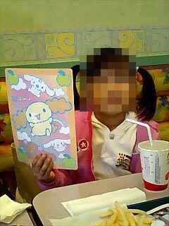 今日は家族でお彼岸と言うことでお墓参りに行って来ました。前々から今日に行こうと言うことだったので、2,3日前からの雨予報で困ったなぁと思っていたら晴れました。しかし風強過ぎでろうそくと線香は立てずに墓石の掃除と献花だけにしました。こんな日に琵琶湖へ行ったらと思うとゾッとします。昼だったので姪っ子のリクエストでマックに行って来ました。しかし時間帯も悪く、どこも混んでいます。2件目の所は程々でしたので、何とか食事をすることができました。何だかハッピーセットはこんな物がもらえるとか。こちらの方は偶然にも今日違うプレゼントをゲットされていたようですが(笑)こんな感じで今日はのんびりと過ごしています。これから久々に大人数(と言っても5人ですけど)で夕ご飯を食べます!!