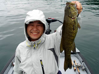 今年のスモールマウスは40UPはこの写真の魚のみでした(泣)目標にしていた45UPは獲れずじまいでした。今年は例年に比べて野尻湖に向かう回数も少なくアフターの時期の平日に休みを取れなかったのがイタかったですね~。とは言え自分自身の腕の問題や状況判断がかな~りあると思います。これからも修行の必要があると思います。ただサイズや数は出なかったものの、久々のビュンビュンで釣れたり、KK-JIGにデスアダーをトレーラーにしたデカベイトに今年は反応が良かったし、セミで綺麗に出てくれたり、去年から良く釣れていた1/4ozフットボールラバジに3インチグラブのパターンもはまったりと、意外とマッチングさせる事ができたのは良かったですね。後はこれでサイズを出せれば最高なんですがなかなかうまくいきませんね~(笑)それと今年も一緒に行った方が満足いく釣りができたのは良かったです。(マ~シュさんゴメンナサイ)ガイドと言うのには大変恐縮ですが僕の今までの経験を皆さんに伝えれたのは良かったです。来年ご一緒できる方には楽しくかつ満足いく釣りをしていただきたいですね!!こんな2006年の野尻湖でしたが、来年も懲りずに遠征していきたいと思います!!