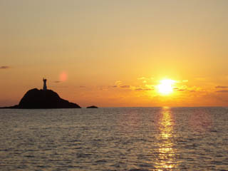 12/31(日)天気 ほぼ快晴風 時折北、北西、西でほとんど鏡の様な海面表水温 16度くらい釣行時間 7:00~14:00水質 クリアー所によりターンオーバー釣果 メバル30センチ、カサゴ20センチ、アカイカ、アナハゼ3,4匹、ペラっぽい奴2匹遂に2006年最後の釣りです。釣り納めの釣りは今年はボートエギングを選びました。いつも通り石倉渡船さんでレンタルボートを借りて名倉湾に出動します。今年最後の日の出です。冷え込んだ様で深場狙いが良いよと言うことで20m前後を狙います。普通にエギングしていると何をやっているかわからないので、前もって用意していた中間オモリを使用してベイトロッドでバーチカルエギングを試してみます。以前録画していた「ザ・ヒット」でボンちゃんと大先生の彼女がやっていたのを参考にしました。ロッドは重い中間オモリとエギをシャープにしゃくるなら跳ねラバロッドのTS-168Hがええんじゃないと思い、試してみます。ボトムに一気に落としてしゃくるといきなり乗りますがロッドのパワーがあり過ぎなのかじぇんじぇん引きません。しかし上がってきたのはアカイカと言うのを初めて釣りました!!アオリとは違う味でしたが柔らかくて美味しかったです。しかしその後は気持ちの悪いナマコみたいなのを引っかけたのみ・・・。延々と沈黙は続き潮が止まったのでロックフィッシュを狙いに行きます。ジグヘッドをフォールさせて水中シモリにコンタクトさせるとバイトは多発しますが、やはりワームがスパスパにされます(泣)しかし粘り続けると遂に待望のヒットです!!ドエライ引きで、絞め気味のドラグが出されるのでロックフィッシュじゃない魚が掛かったのかな?と思いつつファイトします。水深5m位の所で姿が見えますが、チヌかキビレに見えたのですが、どうも違う???何とかネットランディングしたこの魚は30ジャストもある尺メバルでした~!!あまりにもデカイのでタケノコメバルかな~?と思いましたが、後で聞いたらメバルだそうです。と言うわけで本日はロックフィッシュで締めましょうと言う事で(笑)執拗に狙ってみます。次に磯周りをボトムまでジグヘッドをフォールさせます。すかさずヒットしたのは20センチはあるカサゴもキャッチします!!しかしながらアナハゼや謎のベラに邪魔されます(泣)自称チベットの住人(笑)の某師匠さんからメールでアドバイスを受けて浅い場所もやってみます。魚探にはディープにも良い反応が出ていますので、両方やれる場所で交互にしゃくってみますがやはり不発です(泣)結局今年の釣り納めはロックフィッシュ終了でした(笑)しかしエエ引きだったので良しとしましょう!!追記そう言えばメバルのメジャーをあてた写真を撮っていなかったので家で測ってみたら、1センチ縮んでいました(泣)イケスにキープして縮むのはバスと一緒ですね。寄港後に絞めたのも影響したんですね。