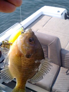 4/6(日)琵琶湖 南湖、湖東天気 快晴風 微風又はベタ凪ぎ表水温 11~13℃前後水質 西岸はスーパークリア、東岸南部はややクリア釣行時間 6~17時釣果 45、コバス~30クラス数匹、ギル2枚今回は穏やかそうですので、いつも通り自分のボートで湖東より出動します。更にいつもの通りのマンメイドをチェックしますがこれまたいつも通りの異常無し(爆)南湖へ向かって西岸のワンドと桟橋なんかをチェックします。しかしここでも異常ありませんので、西岸南部へ移動。ここでは最近マイブームのマーゲイでのビュンビュンですが、釣れてくるのはコバッチー(泣)そして更に今年初のギルちゃんで、しかも2連発します(大泣)凹みながら東岸へ移動。ここでは前回エエサイズをtoruさんとエエサイズ連発して味を占めたマンメイドに入りますが、ここでも釣れてもコバッチー(泣)水温は停滞若しくは下がり気味のエリアも多かったことから、このマンメイドの沖のウイードをチェックしてみると、やはりちょっと底を切ったところにベイトが多数映っています。ちょっと浮いているのかな~と思い、デスアダー5インチをヘコヘコさせてみます。するといきなりロッドがブチ曲がります♪魚体を確認し、ナイスサイズなので慎重にやり取りしますが、ルアーが全く見えていないので呑まれていることを確信!!凍り付きます(汗)何とかネットインできたのは、なかなかエエ体型をした45でした~♪ここでtoruさんと湖上で会いますが、何と手練れのtoruさんが見失ってコバスと戯れているだけのご様子・・・。この晴天無風+前日からのボートカバーも凍る冷え込みによる水温低下で相当タフな様です。しかしここでは30クラスを1匹ヘコヘコで追加するのみ。ランチタイムも近づき、久々に湖上へ出られているレジェンドSAITOさんときっちんレイクでランチです。マッタリトークで盛り上がり、再び湖上へ。東岸中部のハンプなんかもチェックしますが反応無し。そのうち睡魔が襲い、漂流モードになります(笑)再び東岸南部へ向かいます。ここで釣りをしていると、黄色の豪華客船に乗るKガイドとバッティング!!(一応僕が先行者です)Kガイドが入られているので場所は間違いないかな~!!と自画自賛しちゃいます(爆)ここでアッチーと言う噂の僕の中ではあまりアツくなかったエスケープツインのライトテキサスをキャストします。するとツンツンバイトが発生!!聞いて送り込んで重量感を感じてからフッキンぐ~と合わせを入れますが見事すっぽ抜け(泣)マンメイドを再び撃ちますが、見事な位に釣れません・・・。再びナイスサイズを獲ったウイードエリアではネコリグにまるでシーバスの様なゲロゲロな30クラスをゲットするのみです(汗)また更に南下して縦ウイードエリアで勝負することに!!先ほどのエスケープツインのTXを投入しますと、またまたツンツンバイト発生します。今度は逃さないぞ~と十分送り込み、ラインもパンパンに張ってきたのでフルパワーフッキングしますとエエ感じの重量感が伝わります。がしか~し3秒ほどで首を振られてバラシ・・・。デカさが伝わる重量感だけにショックもデカいっす(泣)そして南湖最後のポイントはSAITOさんお奨めの東岸北部の澪筋です。しかしここでは全く反応が得られず湖東へ戻ります。湖東でも撃沈して終了・・・。エエのが釣れて無かったらしく、今日僕が獲った魚も貴重なネタだそうなので記念撮影の対象になりました(笑)ですがウチの駐艇場のメンバーの方がロクマル獲ったそうです!!詳しくはこちら他の方々はほぼ全滅だったそうです。タフコンの中ではありましたが、エエサイズを獲れましたのでそれはそれで嬉しいですが、次回こそ50UPを獲れるように頑張ってきます!!KENKUMA SCHEDULE