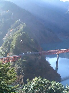 写真はダム湖の真ん中にあるトロッコ列車の駅です