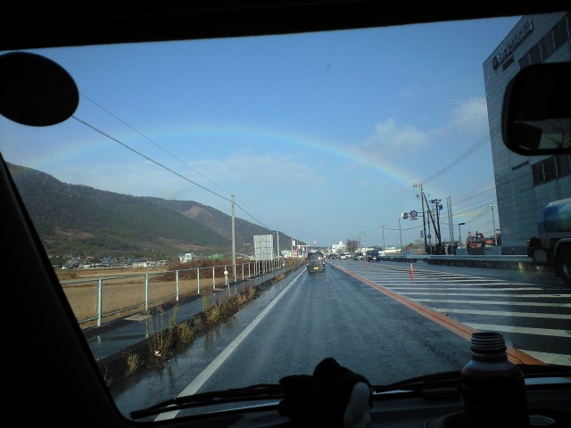 年末28日から30日の2泊3日で、伊勢志摩に家族旅行に行ってきました。僕と奥さんと愛犬の金太郎の3人です♪ ブログ開設以来、過去2回にわたり年末旅行の話題をリアルタイムでアップしていましたが、昨年末は携帯に迷惑メール設定をしたところブログ更新メールも来なくなってしまい、今に至るです。 出発時は仕事のストレスなどでかなり病んでいましたが、沢山の海の幸と旅先でのゆっくりとした時間の流れに癒されて帰ってきました。 名古屋辺りと比べると、伊勢志摩は朝晩かなり暖かかったです♪ 旅の計画・手配をしてくれたウチの奥様に感謝です。 写真ですが、出発時に携帯のカメラで捉えた虹のアーチです。虹の全体が見渡せるなんて初めてだったので、激写しました。 今回面白いことに気づきました。2つ目の写真も同じ虹ですが、横にある山の手前から延びているのが分かります。ちなみにこの山、左折して数百メートル程走ると辿り着きます。虹って案外近くに起こるプリズム現象なんだという事が分かりました。 という訳で、今年の年末旅行は虹のアーチをくぐって始まりました♪ 今年何かいい事が起こる前触れだといいんですけどね♪