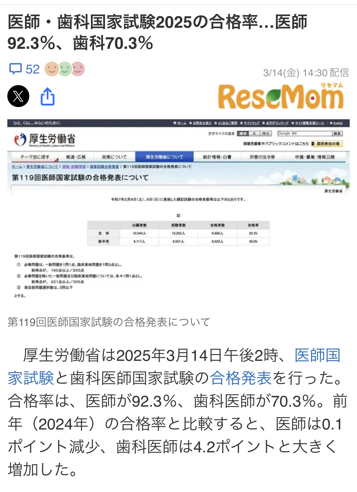 歯科医師国家試験が70%超えにはビックリしました。