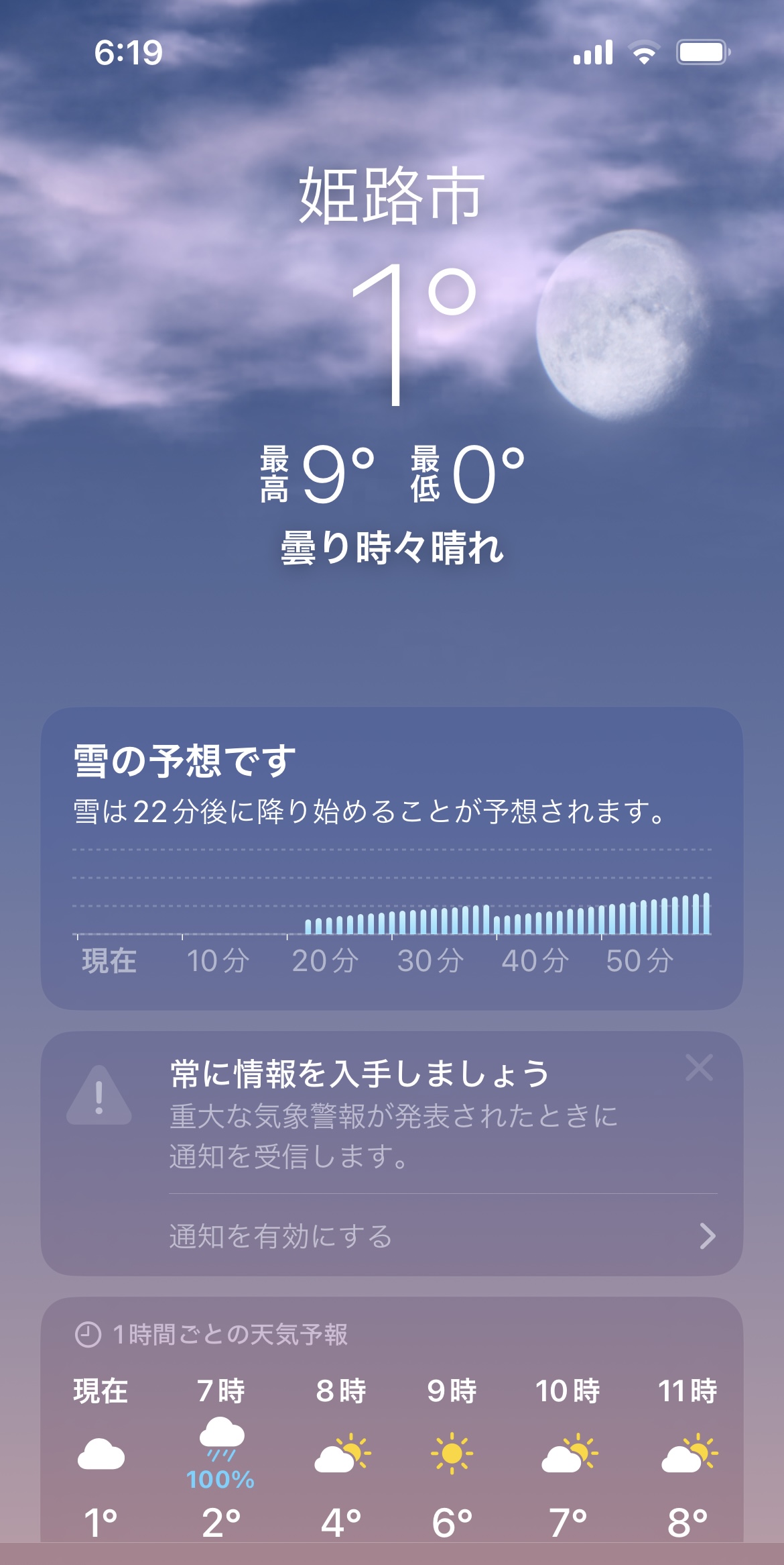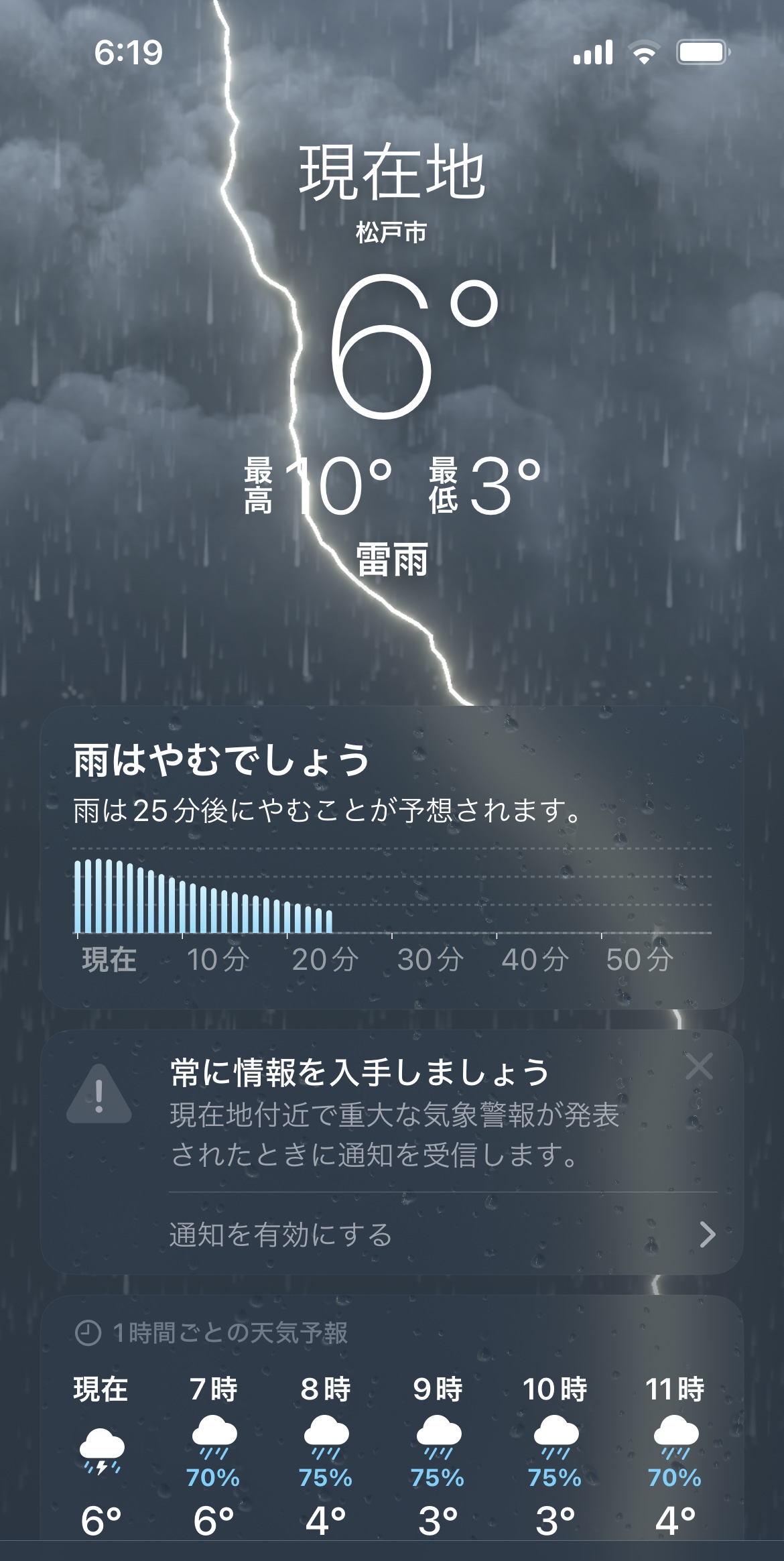 どちらも20数分後に変わり、松戸は雨がやんで、姫路は雪にかわるみたい🤔