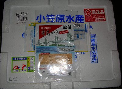 夕方に、荷物が届いた。発泡スチロールに入ってる。何か生体頼んだっけ??で、よく見てみると、福山市になってる。ふ~ん、ねえちゃん何か送ってきたなぁ!何だろうと詳しく見てみると、殻付き牡蠣でした~。やった~!嬉しいぞ!うちの家族は、牡蠣が大好きなんです。で、空けて見ると、殻付き牡蠣に剥き牡蠣が入ってました。少しだけ殻付き牡蠣を蒸して、お腹の中へいれ、弟が帰ってくるのを待っている感じです。今日の晩御飯は、殻付き牡蠣の蒸したのと、牡蠣鍋です。わ~ぃ、嬉しいなぁ!!