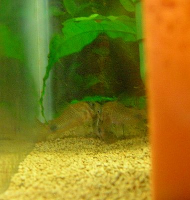いや~、ゲルマローズは、効果抜群ですよ~。歯の調子を見てから入ろうと思っていたけど、痛くなかったので使ってみました~。いつもどんなに熱いお風呂に入っても、汗なんてかいた事もなかったんですけど、5分くらいで頭の毛穴が開いた感じがしました。10分くらいで、薄っすらと汗をかきました。その後は、こうやって寒い部屋でパソコンしていても、そんなに寒くないです。何となく肩こりも柔らいたかも?で、今日、商品も着いたしとルンルンして、自宅51cm水槽を覗いてみました~。コリが3匹、くっついて井戸端会議中でした。ちょっと画像悪いのですが、分かりますか~?何か今日は、機嫌が良いぞ~。って聞こえてきそうでした。その後、ず~っと観察してたんですけどね、3匹が絡まってあっちこっち低い所を泳ぎ回ってました。カメラを向けても気づかなかったし、何してんだろうか??