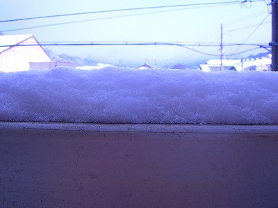 昨晩から降っている雪、今朝測ってみたら、10cmでした。寒いです。ちょっと外で雪かきなんかしていたら、帽子に雪が積もっておりました。ノーマルタイヤでそれも、雪道経験の無い私が車で、会社に行く事は不可能です。で、父の運転で父の車に乗り込んだ時の写真です。窓が全てこんな感じです。見えません。 到着後、鯉たちはどうしてるんだろうと覗き込みました。姿なんかは何所にも無く、皆石の下に潜り込んでいます。排水口(パイプ)には、ツララがずらりと並んでいます。池の周りは、もちろん雪、雪。そして気になる積雪は、10cmです。でも、これは午前中測った分です。ず~っと降り積もっていますから、午後からはもっと積もってるでしょう。でも、お昼から私は、お仕事お休みです。帰って来れないからね。弟が雪用の車で、送ってくれる事になってました。が、犬の散歩頼まれてしまいました。これから行って来て、ゆっくり休みたいと思います。