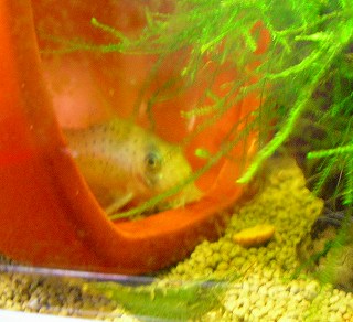久しぶりに見たシクリです。最近では、全然前に出てきません。どうしてなのか??でも今日は、餌をあげてから、水槽前で構えて見ました。そうしたら土管の中から、目の前の餌を狙ってました。見つかった!って、顔してます。久しぶりに見たシクリは、ちょっとお腹が膨らんだ感じがします。でも、♂なのか♀なのかいまいち分かりません。