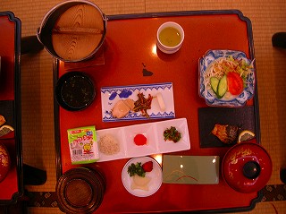今年初めて、つくしを見ました。まだ、兵庫では見た事がないのですが、流石別府。といってもお墓の土地に生えていたので、取って帰るわけにも行かず、写真だけにしておきました。今回は、偉く早く終わったんですが、お昼を食べて車の中で、横になっていたら、気づくともう山を降りる時間に・・・。いったい何時間寝ていたのか? 写真、へたっぴですが、夕食です。この後、鯛のお刺身、ご飯、お汁、デザートだったかな?とにかく隣のおじちゃんが、ビールが無くならない内についでくれるので、凄く沢山飲んだような気がします。この後、部屋へ行き、お風呂に行きましたが、去年には無かった、屋上の露天風呂。マイナスイオンを出す石で作った風呂釜のお風呂は、最高でした。風呂上りに、いつもだったらスキンケアをするんだけど、何も付けずにバッタンキュウ~。お休みも言わずに、朝までぐっすり寝ました。