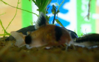 やっと見つけましたよ~。立て泳ぎです。どうやら餌が浮いていると思っての行動のようです。ベタに乾燥赤虫を上げているんですけど、それをパクパクしながら立て泳ぎをしている模様です。手前の白コリちゃんは、かなり長い時間縦泳ぎ状態でした。見つけてから、カメラを向けたので、短く写ってます。いや~、本当に上手いもんです。