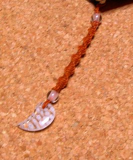 まだまだ嵌り続けているマクラメ。携帯ストラップを作ってみました。先についているのが、ベネチアングラスの勾玉。可愛いので購入してみたけど、実物を見ると小さすぎて、ペンダントトップに使えない事が分かりました。急遽、ストラップに変更しました。中々の出来です。これがいま1つ、上手く出来なかったベネチアングラスのビーズを使ったブレスです。 平たいビーズなので、綺麗に糸が引っかかっていない。着ける時に、ビーズを糸の中に収めないと綺麗に見えません。失敗作です。もう1つ、ベネチアングラスの丸いビーズとアベンチュリンです。 これはちょっとお気に入り。作ってすぐ着けてます。これとお揃いのリングも作ってます。中々可愛いですよ。