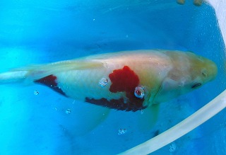 昨日から隔離病棟に移した和金ちゃんです。見てください。痛々しいです。鱗が立っているんです。この子は、春先にも調子を崩して隔離病棟に来ていました。その時は、無事に池に戻ることが出来たのです。が、しかし今回はどうなんでしょう?うろこの拡大図です。こんな感じです。今年は、池の鯉や金魚にとって災難だったと思います。春先から今までで、5,6匹☆になっています。全ての鯉、和金は鱗が剥がれてしまって、ツルンツルンの状態でした。川魚のハイジャコは、何故なのか元気なんですけどね。池を触りすぎなのでしょうか?新しい水が何分かに1回、入ってくるようになっているんです。これが原因なんでしょうかねぇ?鯉、和金に詳しい方いらっしゃいましたら、教えて下さい。何が原因なんでしょうか?
