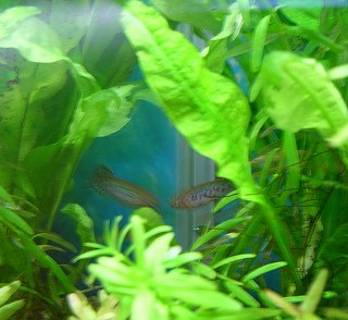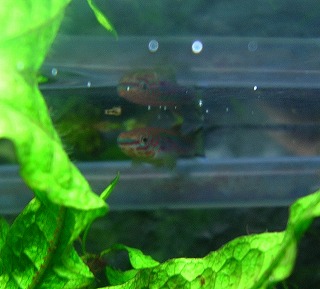 ビーが到着してからと言うもの、見ていなかった水槽。久しぶりに見てたら、大きくなって綺麗なガードネリィ。って、分かりにくいですよね。ミサジィのカラーとちょっと違うのよ。ちょっと画像が荒くってピントが合っていないけど、ヒレの枠が黄色。この子は、お父さんです。子供のヒレが綺麗に撮れていないので載せれないけど、水色?青紫?ラベンダー?ッて言うような色してます。で、スッカはと言うとこれ♂だけど、あんまり色が出ていないです。ヒレも黄色やブルーって感じでなかったような気がする。その中間が出たような、それかまだまだ色が変るのかなぁ?とにかく綺麗になっております。今度写真を撮るんだったら、横向きを撮ってみようと思います。