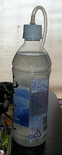 今回、エビを買うに当たってグロッソを植えてみました。一緒に入っていたショートヘアーグラスも植えたのですが、この2種類の水草ってCo2いるじゃないですか。ミドポン持っているけど、もう無いしどうしたもんかと・・・。あっ、そうそうkurotoroさんが自作してたなぁと思い出し、せっせと作りました~。これ!でも、1時間しても3時間しても発酵しなくって、分量間違えたかなぁとイースト菌を入れてみたり。よくよく考えると室温とかでも変るんだろうかと思ったのでした。今朝、覗いて見るとペットボトルの中、ポコッポコッとなっていました。これで添加出来てんでしょうかね?そして次、作ったのがモスマット。すべて100円均一で買ったもので作りました。タイルにウィローモスを薄く敷いて、鉢底に入れるネットを巻きつけでビニタイで止めています。まだ、生えてきていませんが何とかマットになって欲しいです。
