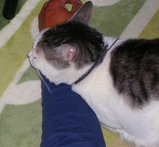 みーです。今パン焼きあがって、父母のお部屋へパンを持って行ったのです。そうしたら気持ち良さげに、みーが寝ていました。それも人の腕を枕にして。顎置いてますねぇ~。いっつもこんな感じで弟にベタベタです。弟も腕痛くないのか?私の横では、絶対に寝ないのに、何故に弟の横に寝るのかよく分かりません。(妬)普通、男の子は同姓に甘えるのでしょうか?男の子は、女性に行きませんか?う~ん、おかまちゃんだからかなぁ?(笑)