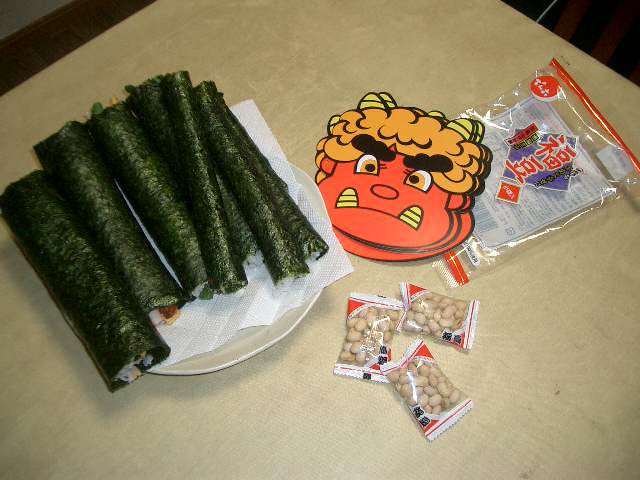 今日は節分!行事大好きな私たちは、当然大きな声で豆まき&恵方巻き丸かぶりです! もちろん恵方巻きは手作り!きっと全部で200円程度でしょう(*^_^*)これで我が家にも福が来るかな???